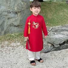 Chất liệu: Áo dài cách tân cho bé trai, áo dài tết màu đỏ màu xanh màu vàng cho bé trai nổi bật với có chất liệu thoải mái cho bé yêu kèm quần, bé diện tết du xuân