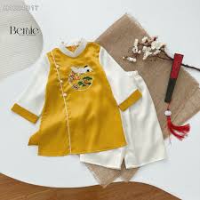 Thiết kế: Áo dài tết, áo dài cách tân cho bé trai với thiết kế áo dài cách tân màu đỏ hoặc vàng kết hợp quần lụa trắng kem sang xịn, hoạ tiết: ihình thêu vân hạc độc đáo, đẹp mắt, lên form nhìn lịch lãm, sang trọng.